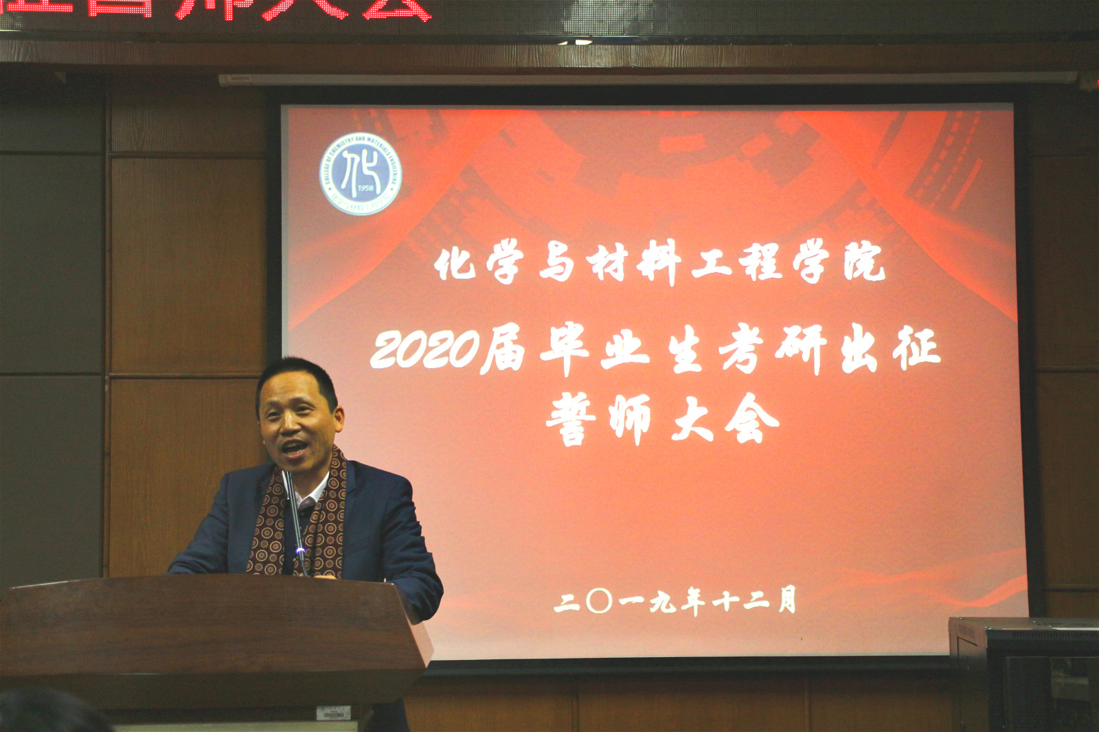 2019年12月20日下午,化材学院2020届毕业生考研出征誓师大会在208会议室举行。王舜院长、熊琳书记、周敬业书记、2016级班主任、任课老师以及全体2020届考研学生参加本次誓师大会 。