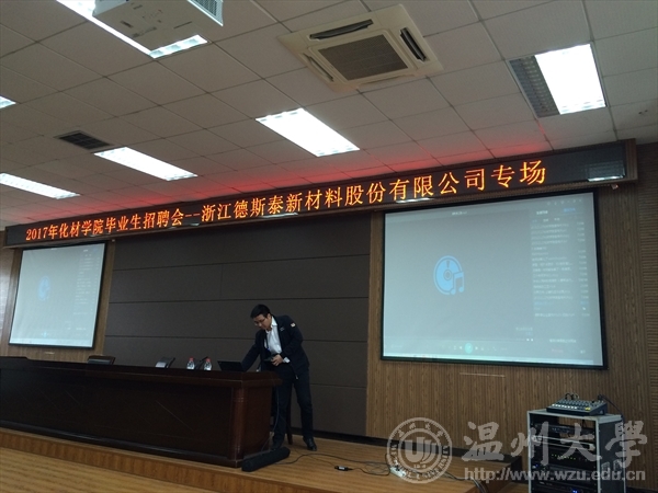 最后是企业专场招聘会环节。来自浙江正瑞科技有限公司和浙江德斯泰新材料股份有限公司的人事经理,分别对自己公司的企业规模、企业文化、发展战略、人才需求、薪酬待遇等方面做了详细介绍。两位经理通过现场问答的方式与同学们进行了交流,并受到毕业生们的热烈欢迎。