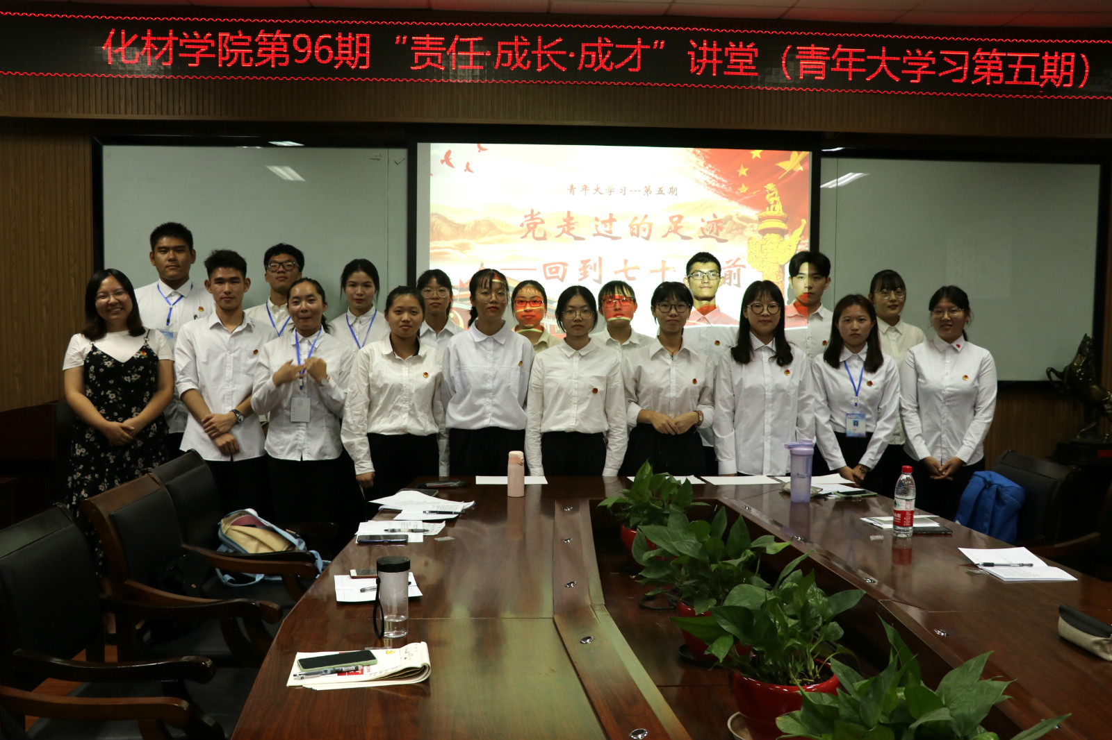 歌声嘹亮,唱响了同学们青春无限,积极向上的精神,同时也表达了他们不忘初心,牢记使命的决心,虽然五四运动激昂的呐喊声已过百年,但是五四运动的精神却一直沉浸在中华民族奋斗的血液里,它历尽艰辛穿越了一个世纪来到我们身边,百年五四薪火,有“理”共同传承,激昂的歌词是每位化材学子的庄严承诺。