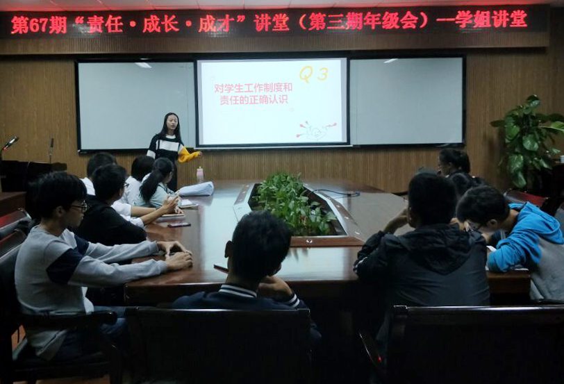 讲堂上,郑洁学姐结合她自身在学生工作方面的经历给了新生许多好的建议。她表示,新生们要本着锻炼自身、提升自我的良好心态去做事,同时不能功利化看待学生工作。另外,新生们如果担任学生干部,应该更加注重树立自身的责任与担当意识,正确处理学生工作与班级关系、学生工作与学习的关系、集体与个人的关系,合理安排时间。