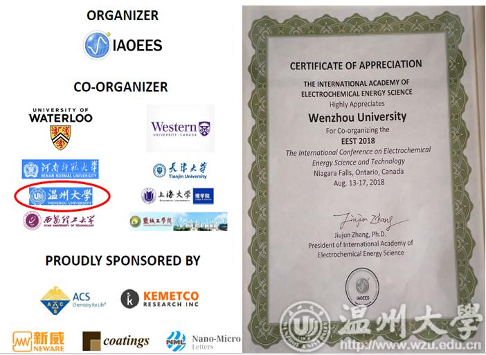 由永利3044集团官网协办的2018年第四届国际电化学能源科学与技术会议(The International Conference on Electrochemical Energy Science and Technology 2018, EEST2018)于8月13日-17日在加拿大尼亚加拉市召开,会议由国际电化学能源科学委员会与加拿大滑铁卢大学和西安大略大学共同主办(IAOEES),