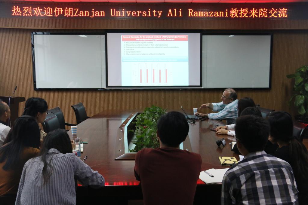 2017年10月20日上午9:30,伊朗Zanjan University Ali Ramazani 教授应邀做客永利瓯江学术论坛,化材学院相关师生参加论坛讲座。