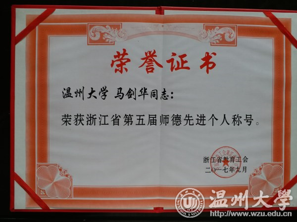 在民主推荐的基础上,省教育工会对候选人的材料进行审核并经评审委员会评审,永利马剑华老师获得“浙江省第五届师德先进个人”荣誉称号。