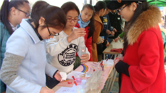 下午4点,天上的夕阳散发着迷人的光芒,地上的人儿依旧沉醉在化学的魅力中。此次“化学游园会”活动由化材学院团委学生会科竞中心及志愿者们团结合作,将“化学”进行到底,让更多的同学更加了解化学的乐趣和神奇,展现了我们化材学院的专业特色。