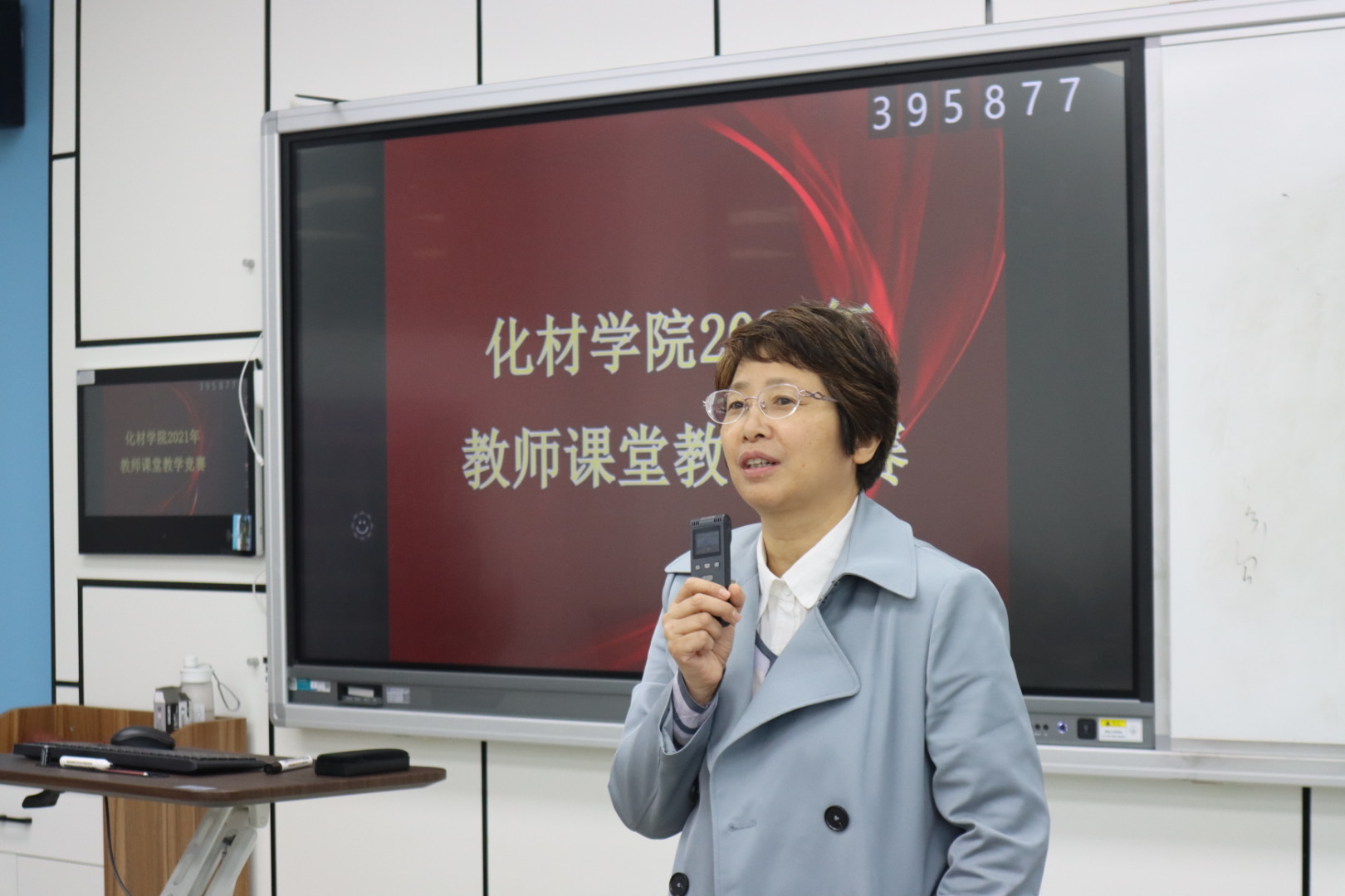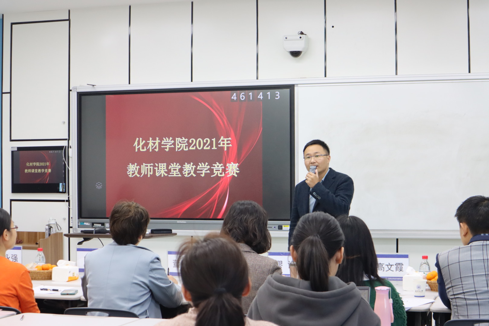 首先化材学院陈锡安副院长为竞赛致辞,他系统阐述了本次活动的目的与意义,指出提升教师课堂教学技能的重要性,并预祝本次竞赛顺利进行。