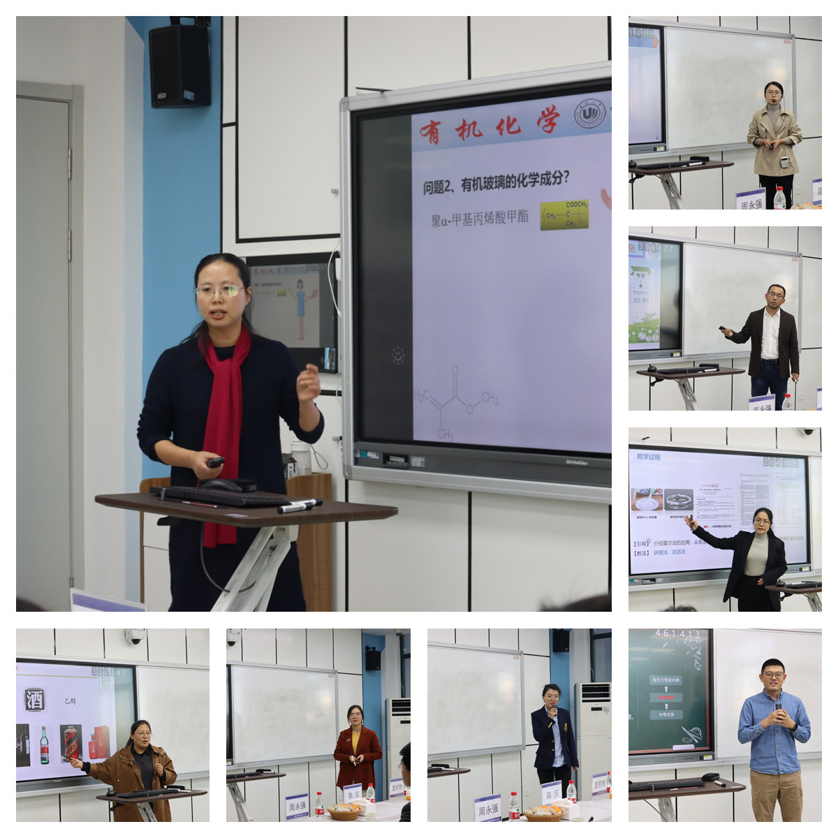 11月10日下午,永利2021年“教师课堂教学竞赛” 在智慧教室11A-310顺利举行。本次竞赛由化材学院教学科主办,学院工会协办,来自应化、材料、化学三个系的八位专任教师参赛。永利教师教学发展中心主任董新姣、化材学院缪谦、周永强、陈庆、高文霞、邵银林等六位专家担任评委。