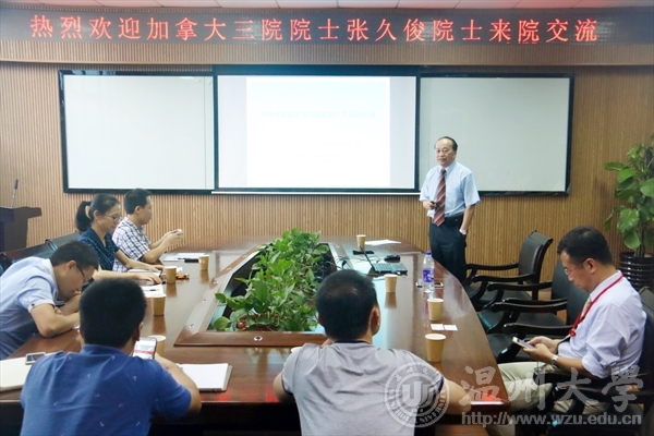 2017年9月26日上午10:00,加拿大三院院士张久俊院士应邀做客永利瓯江学术论坛,院长王舜、副院长杨小平,院长助理杨植及相关师生参加论坛讲座。