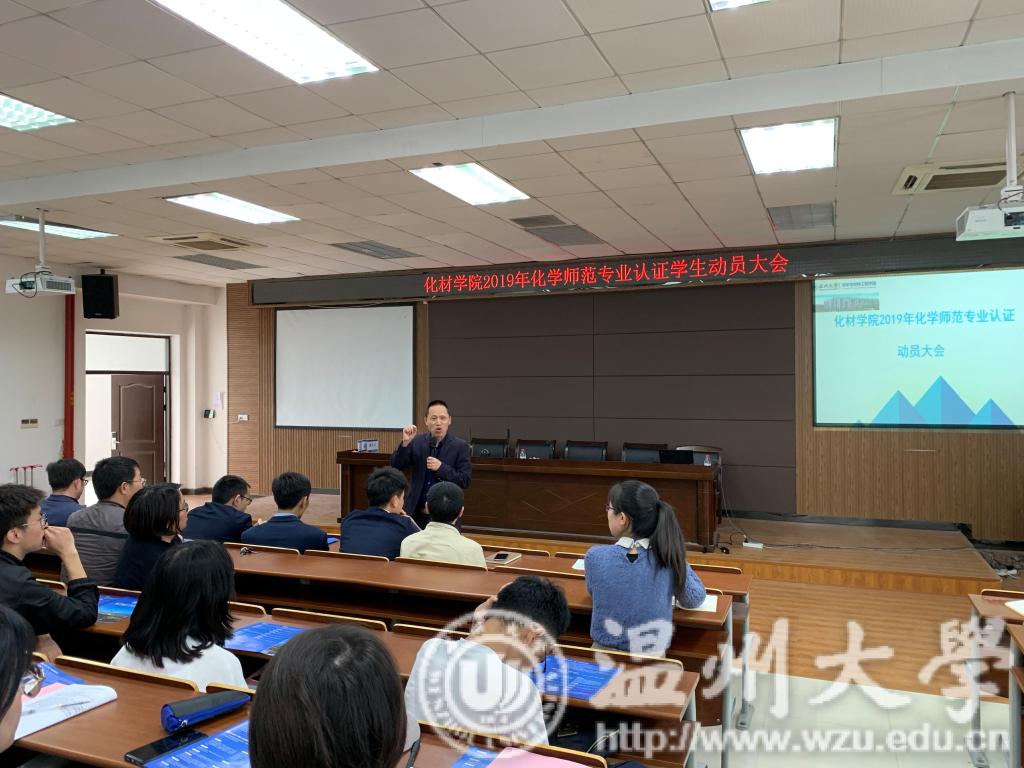 为了更好地迎接化学师范专业认证。5月8日中午,化材学院于11C401召开了专业认证动员大会,化材学院院长王舜、党委副书记潘从义、化学系主任、专业负责人夏远志教授、各师范专业班主任、学生科副科长易招娣、辅导员邹涌彬以及化材学院全体师范专业学生出席了本次动员大会,党委副书记潘从义主持会议。