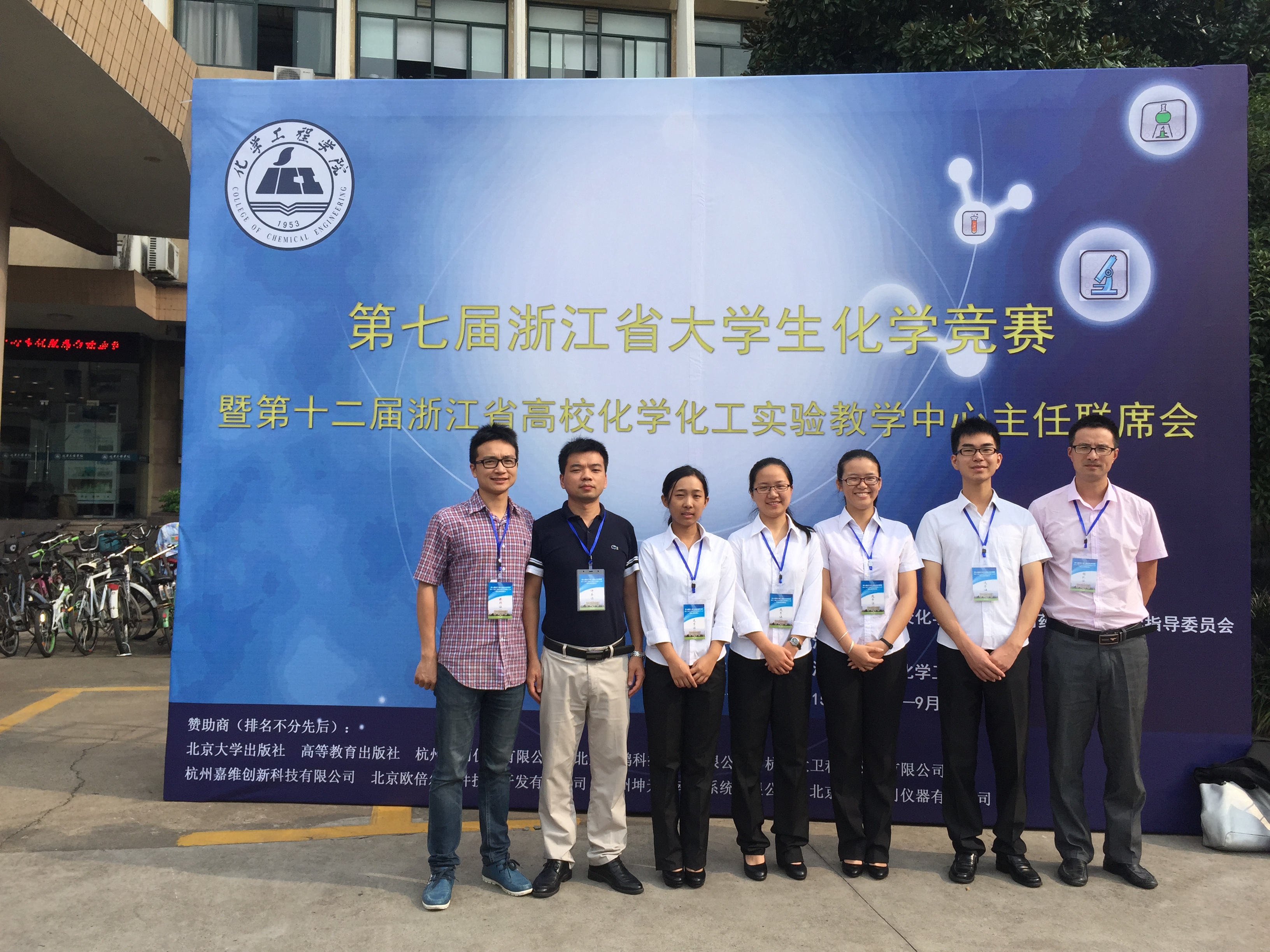 9月8日至10日,第七届浙江省大学生化学竞赛总决赛暨第十二届浙江省高校化学化工实验教学中心主任联席会在浙江工业大学朝晖校区举行。由永利邵黎雄、肖洪平老师担任指导老师,徐彬彬、张瑜、范伟斌、胡献丽四名学生组建的 “永利3044集团官网天马行空队” 参赛队伍,经过激烈的竞争,最终获得第七届浙江省大学生化学竞赛一等奖的佳绩。