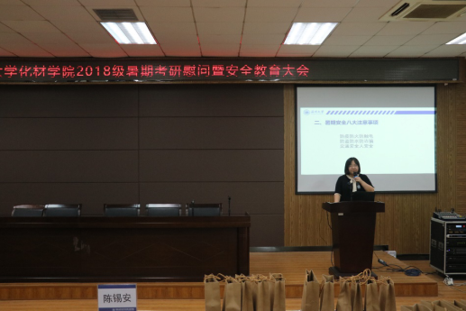 2021年7月14日下午,化材学院2018级暑期考研慰问暨安全教育大会在11c-401考研教室举行。王舜院长、杨植副院长、陈锡安副院长、周敬业副书记、辅导员孙玮玮、邹涌彬以及2018级考研留校学生出席本次大会,会议由周敬业副书记主持。