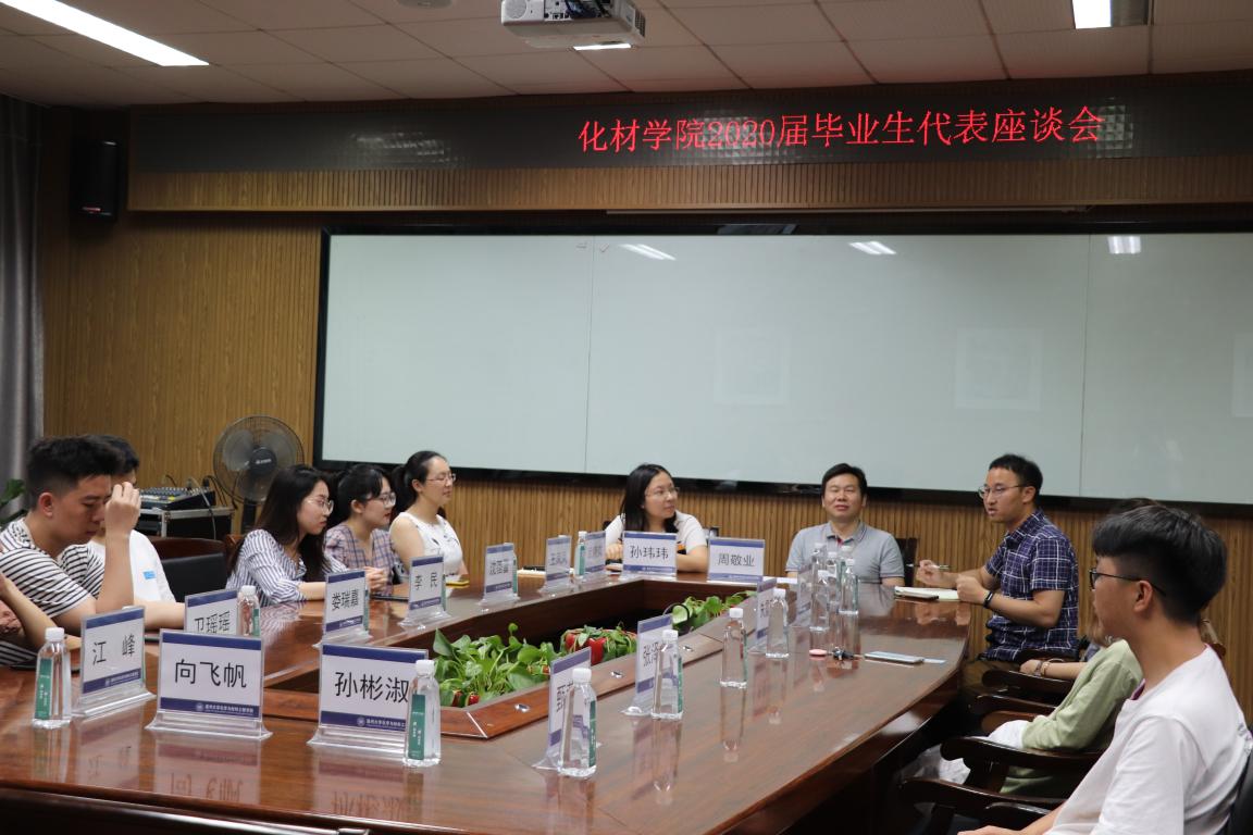 化材学院于2020年6月20日17:00在11B204会议室举办了化材学院2020届毕业生座谈会活动,出席本次会议的有党委副书记周敬业老师、学工办孙玮玮老师、武晓岚老师、邹涌彬老师以及毕业生党员代表,班级骨干代表和团学干部代表。