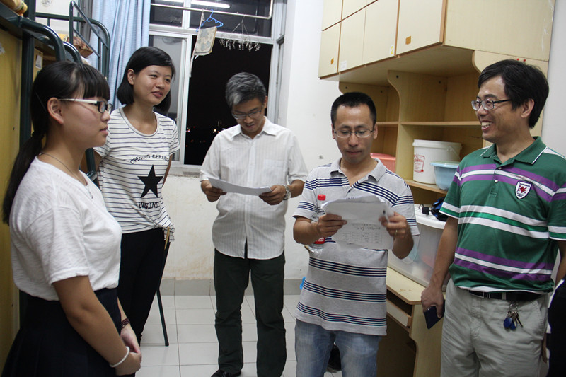 为了更深入了解新生入学情况,帮助新生适应大学生活,9月8日晚上,学院全体领导、系主任、辅导员、新生班班主任走访了2015级新生寝室。