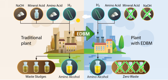 最近,永利3044集团官网张伟明教授课题组首次提出了集成催化加氢与双极膜电渗析(EDBM)的新工艺,进行了手性氨基醇原子经济合成方法的研究。以H2和L-丙氨酸为原料,通过催化加氢和EDBM最终成功地转化为纯净的L-丙氨醇产品。这个过程无需添加额外的酸和碱,无任何废弃物排放,副产物仅仅为水,具有完美的原子经济性。在此基础上,系统地研究了3种典型无机酸(H3PO4,H2SO4,HCl)体系L-丙氨醇的合成,结果表明EDBM过程无机酸的去除率均高于99.9%,且成本及能耗都较低。这表明该集成新工艺具有一定普适性,环境友好,符合绿色化学发展的要求。