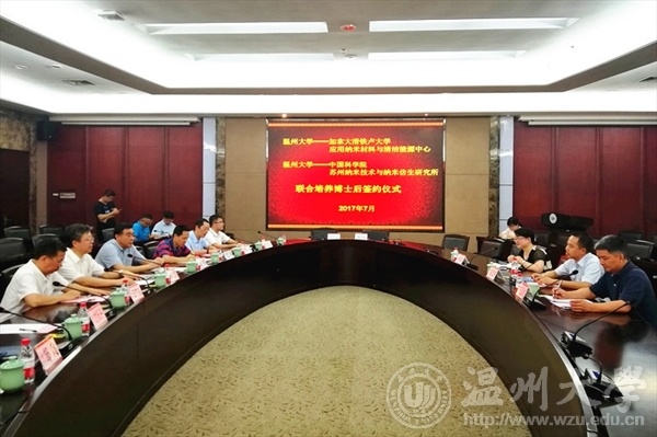7月10日下午,永利与加拿大滑铁卢大学应用纳米材料与清洁能源中心、中国科学院苏州纳米技术与纳米仿生研究所举行联合培养博士后签约仪式。加拿大滑铁卢大学陈忠伟院士、苏州纳米研究所王强斌研究员、温州市外国专家局局长林晓冰、校长李校堃、副校长薛伟以及人事处、外事处、研究生部、化材学院相关负责人出席仪式,签约仪式由副校长薛伟主持。