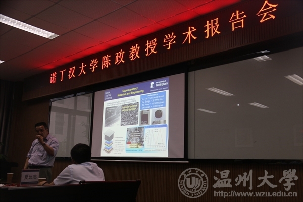 随后,陈政教授为化材学院师生作了题为“电化学储能创新”的学术报告。他首先简要介绍了自己的科研团队,并对团队在超级电容器(supercapacitor)和超级电容池(supercapattery)的基础和应用研究方面取得的国际领先创新成果及市场的前景作了详尽的阐述,为永利师生的科研发展提供了新的思路和高度。在交流互动环节,学院师生就本次报告的内容和感兴趣的问题与陈政教授进行积极的交流互动,收益良多。陈政教授的详细回答,赢得现场阵阵掌声。