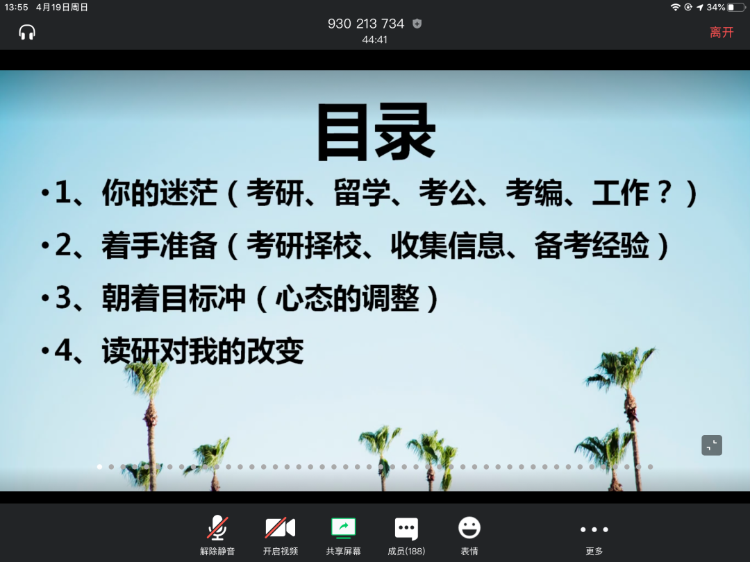 4月19日下午1点,永利以线上会议召开了永利3044集团官网2017级年级会暨考研动员大会,周敬业副书记、方国勇老师、刘楠楠老师、学生科辅导员孙玮玮老师、15级杜洁丽学姐、17级班主任老师以及2017级全体学生参与会议。