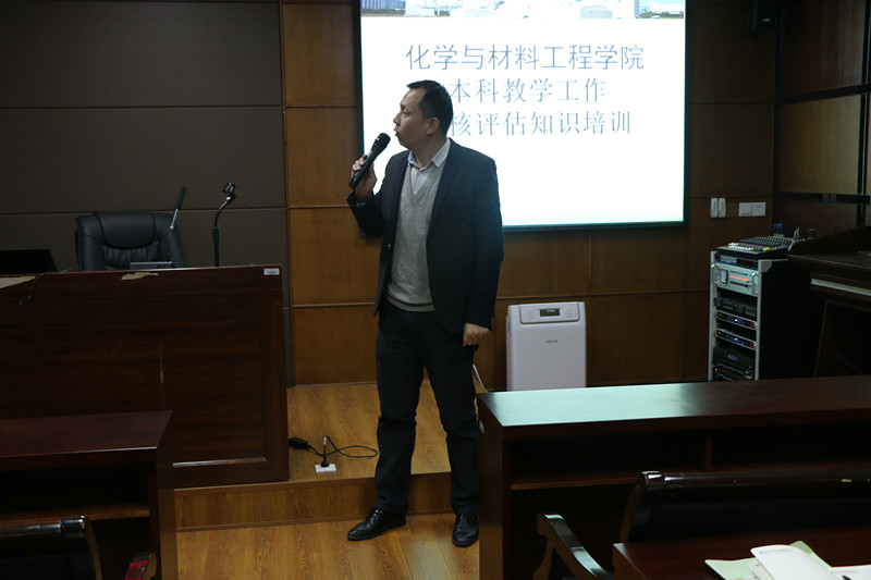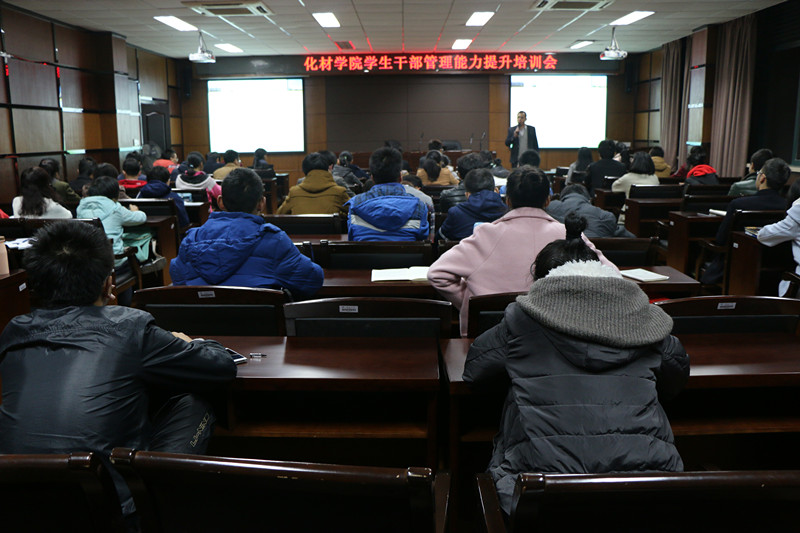 12月15日晚上,化材学院在化材楼208会议室召开了化材学院学生干部管理能力提升与本科教学审核评估工作培训会。化材学院团委、学生会全体成员、各班班长、副班长和团支书参加会议,党总支部副书记潘从义作专题培训。