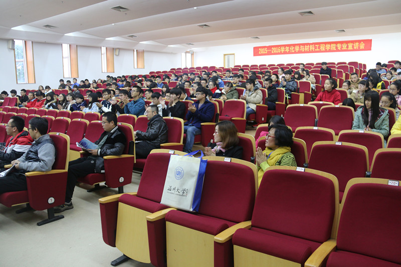 宣讲会伊始,夏远志博士作为化本专业教师代表向听众介绍了化材学院化本专业的发展,从专业概况、定位与目标、师资队伍、教学资源建设与成效、特色与优势等几个方面展示了化本专业的过去、现在及将来。来自13化本班的王优媛通过介绍自己的班级向在场学生展示了化本专业之美以及专业就业广阔的前景。接着,化工系主任徐进以他自己的经历和对化工专业的认识用幽默的口吻对在场学生讲解了化工专业在学习和就业方面的一些事宜,使听众对化工专业有了更深入的了解。来自13材料班的牟露茜也作为班级代表向听众展示了材料专业的魅力。最后,毕业于应用化学专业的校友苏海林以华峰集团经理的身份向在场学生仔细讲解了应化专业在职场上的宽广出路,同时他也也向在场新生提出了一些建议。