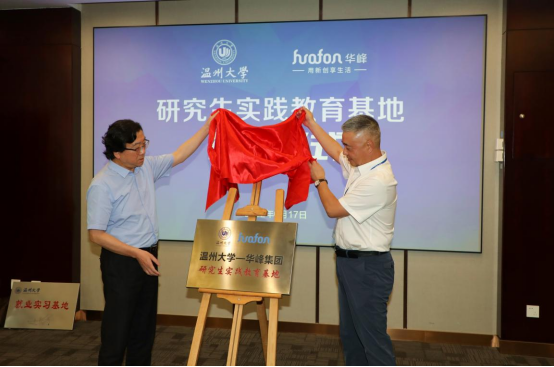 会上,双方进行了研究生实践教育基地和就业实习基地的签约及授牌仪式,仪式由华峰集团总裁助理邹宗钧主持。永利党委书记刘吟和华峰集团总监王利代表双方上台签约。蔡曙光副校长和华峰集团潘基础副总裁进行了授牌仪式。