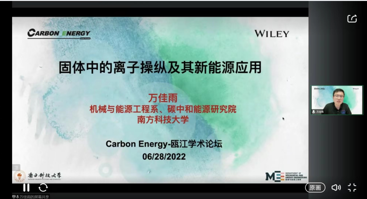 万佳雨教授的报告题目是固体中的离子操纵及其新能源应用。