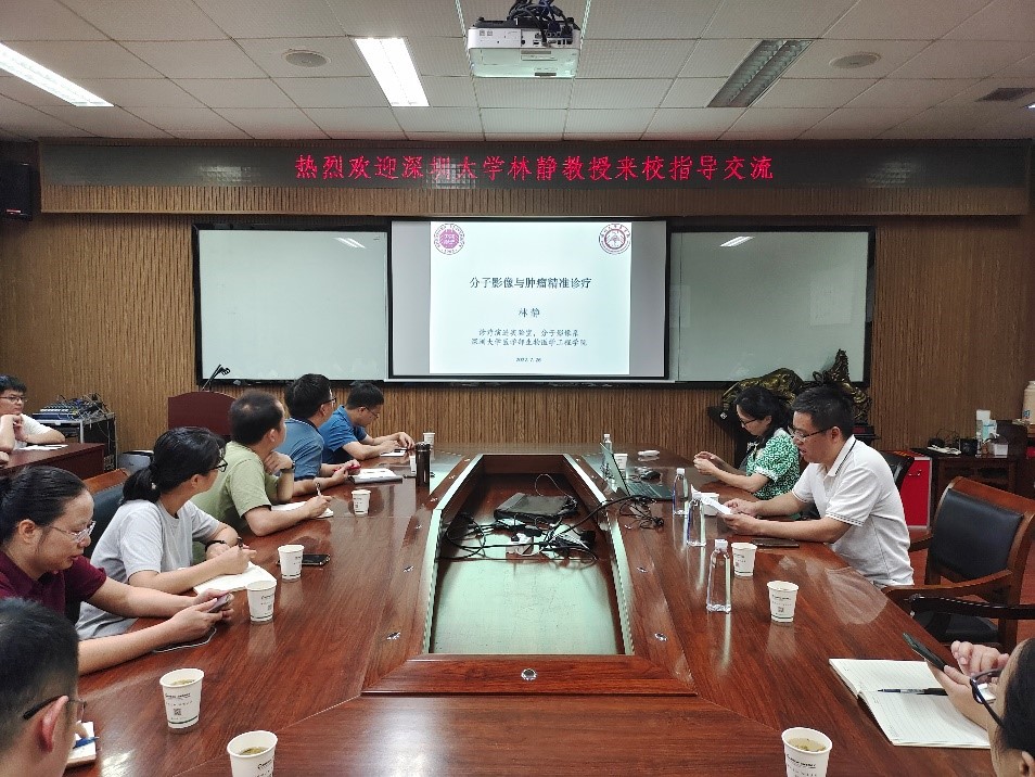 2022年7月27日,永利2001级化本校友、深圳大学林静教授回归母校,在学院204会议室做了题为“分子影像与肿瘤精准诊疗”的讲座。讲座由化材学院学术委员会主任张兴国教授主持,永利3044集团官网化材学院院长杨植教授、副院长陈锡安教授及相关师生代表参加了本次讲座。讲座伊始,化材学院张兴国教授对校友林静教授的“回家”表示热烈欢迎,并向师生介绍了林静教授的基本情况。