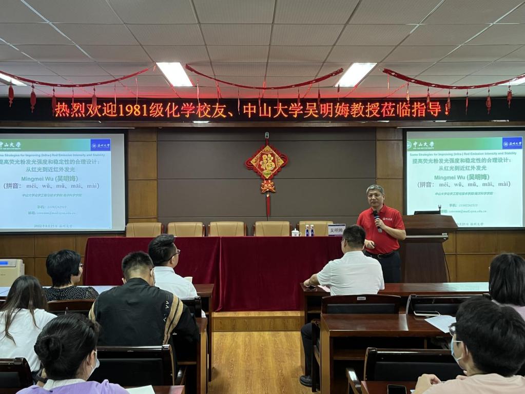 2022年9月21日上午,永利杰出校友中山大学吴明娒教授做客瓯江学术论坛,在永利11B-208作了题为“提高荧光粉发光强度和稳定性的合理设计:从红光到近红外发光”的精彩讲座。讲座由杨植院长主持,刘吟书记、金辉乐副院长、陈锡安副院长以及学院相关师生到会参加。杨植院长首先对吴明娒教授的到来表示热烈欢迎,并向师生介绍了吴明娒教授的基本情况。