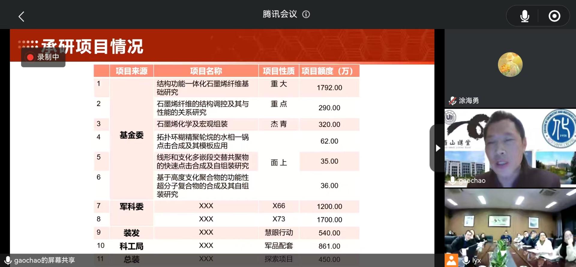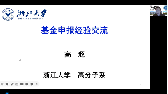 为更好推进党建和业务工作深度融合,促进学科建设不断发展,12月06日晚上20:00,浙江大学高超教授应化材学院杨植院长邀请云做客瓯江学术论坛,作了题为“国家基金申报浅谈”的线上讲座。本次讲座以线上线下相结合的方式举行,会议由杨植院长主持,永利20余位青年教师在化材学院11B-208会议室线下参加,线上于腾讯会议同步展开,永利以及其他高校100多位同仁在线参加。杨植院长首先对高超教授的到来表示热烈欢迎,并向老师们介绍了高超教授的基本情况。高超系浙江大学求是特聘教授、博导,国家杰出青年基金获得者、浙江大学高分子科学研究所所长。长期从事石墨烯化学与组装材料等方面的研究。在Science, Sci. Adv., Nat. Commun., Adv. Mater.等期刊发表SCI收录文章240余篇。承研基金委重大、重点、杰青、面上,国家重点研发计划课题,军科委基础加强等项目十余项。相应成果打通了氧化石墨烯“料-材-器-用”全链条发展通路,完成了78项氧化石墨烯及其宏观组装成果相关专利权的转让,转让金额超2000万元,建成了全球首条获得国际石墨烯产品认证中心(IGCC)认证的单层氧化石墨烯生产线。曾获首2021年度浙江省自然科学奖一等奖、届钱宝钧纤维材料青年学者奖、全国发明展览会“发明创业奖项目奖”金奖等荣誉。
