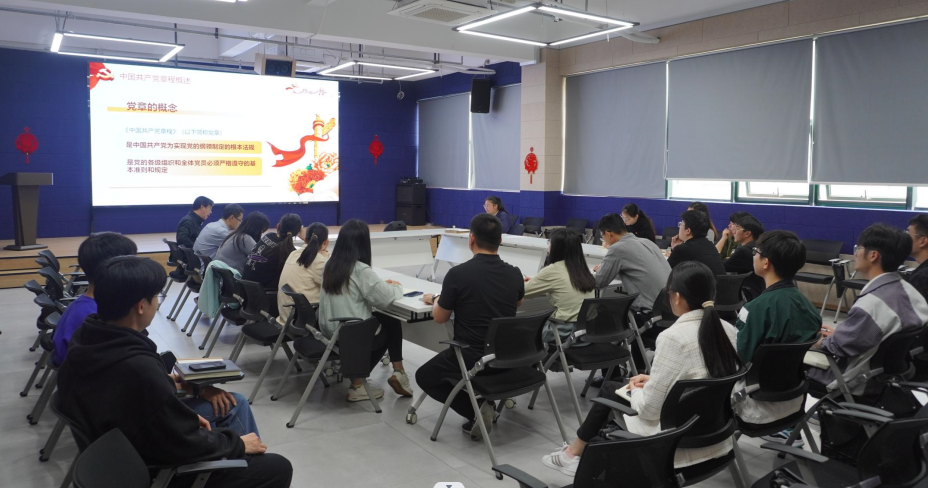 会后,师生党支部联合开展了“学党章、强党性、作表率”主题党日活动,学院党委组织员陈旭老师带领大家重温入党誓词,以上党课的形式,与支部党员共同学习了新修改的《党章》。