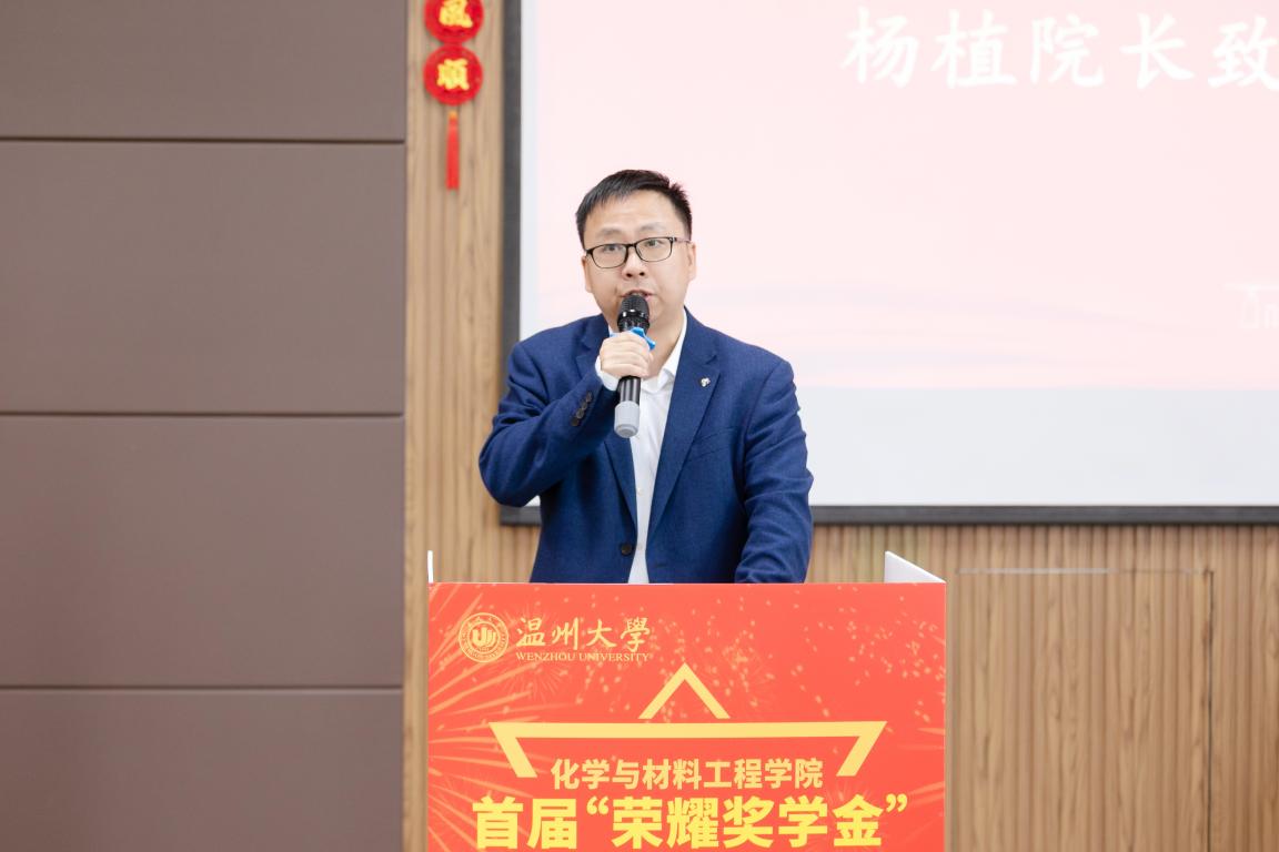 杨植院长致辞。他介绍了陈仁尔先生和他设立的荣耀奖学金,指出校友是学院的宝贵资源,学校和学院的发展离不开一代代有着深厚社会责任感与教育情怀的校友的关心与支持。他高度赞扬了陈仁尔先生心怀母校、无私奉献的精神。希望同学们向陈仁尔校友学习他不断向前,永不止步奋斗精神,鼓励同学们要志存高远,接续奋斗;要练就本领,勇于担当;要心怀感恩,回馈社会。