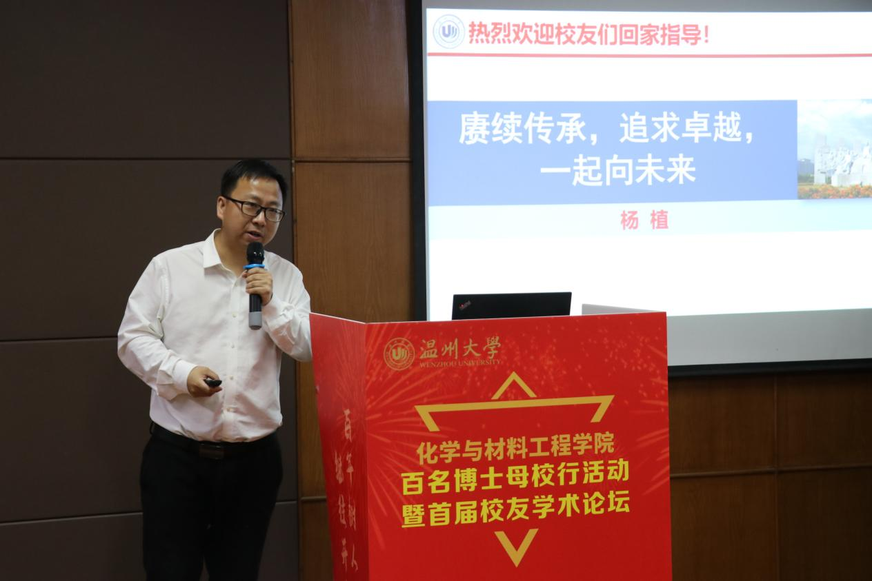 杨植院长从师资队伍、学科发展、专业平台、科学研究、服务地方等方面向校友们作了近年来学院建设和发展情况汇报,与参会人员一道分享了学院长足发展带来的喜悦,并对各位校友长期以来给予学院的支持和贡献表示衷心感谢。