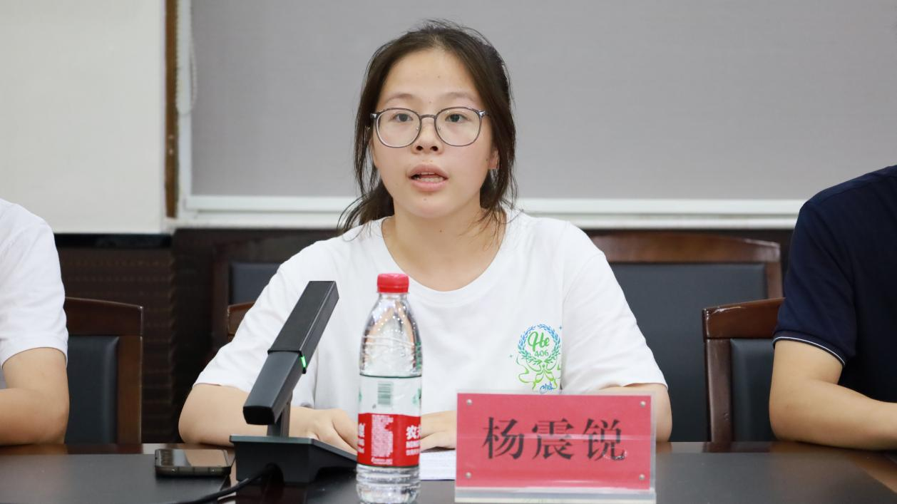 随后,He-406暑期实践队队长杨震锐汇报了实践队的基本状况、活动安排,以及参加实践队以来的成长感悟。
