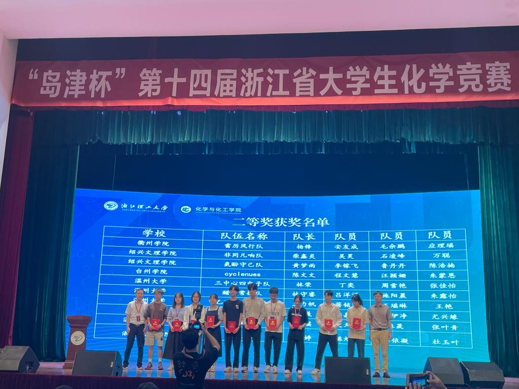 8月26日,浙江省“岛津杯”第14届浙江省大学生化学竞赛决赛在浙江理工大学拉开序幕,比赛历时二天。来自全省34所高校89支队伍共计356人进入决赛阶段比赛,经“创新项目研究”、“现场答辩”、“实践能力考核”、“化学知识测试”等环节的激烈竞争评出最终结果。本次大赛永利共有20支队伍参赛,其中8支队伍进入最后决赛阶段,最终获得一等奖4项,二等奖4项,三等奖3项的佳绩。