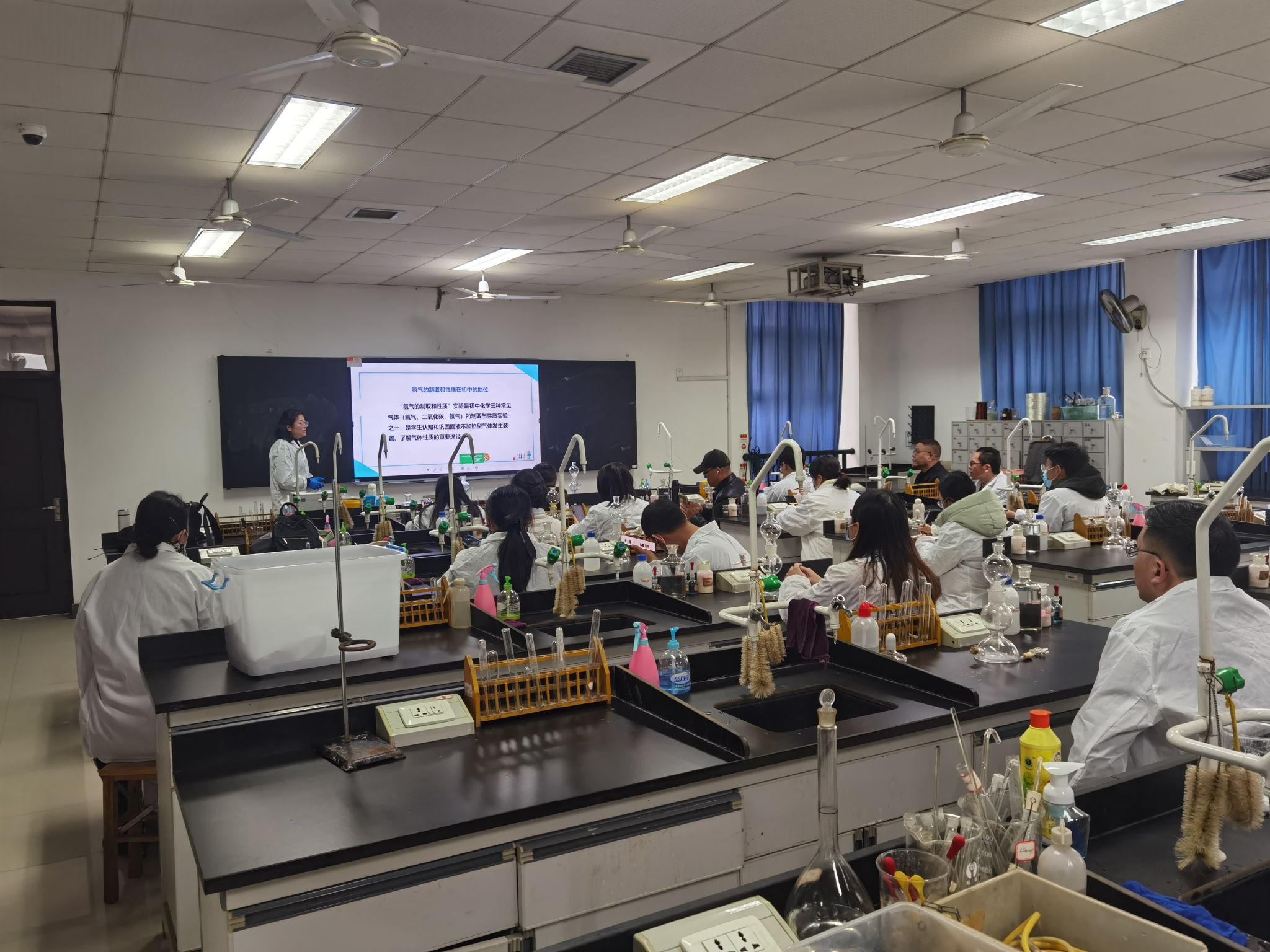 培训内容主要有理论和实践两大部分组成,主要包括危化品相关政策法规、基本知识、安全技能、责任意识;中小学化学实验安全管理;实验室建设;化学实验实践体验;创新实验等。永利邀请了陈迪妹、肖洪平、邵黎雄、张卫兵、陈素琴等资深骨干教师担任此次专项培训的老师。培训过程中,永利老师详细讲解各实验的原理、实验步骤及操作注意事项,学员们独立完成相关实验操作。