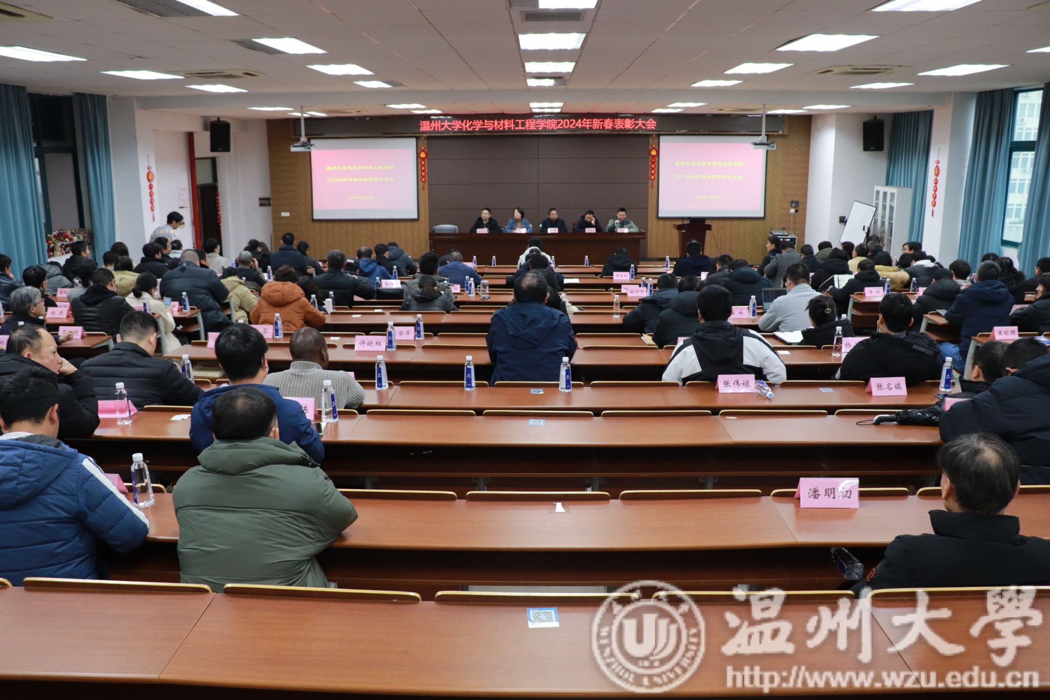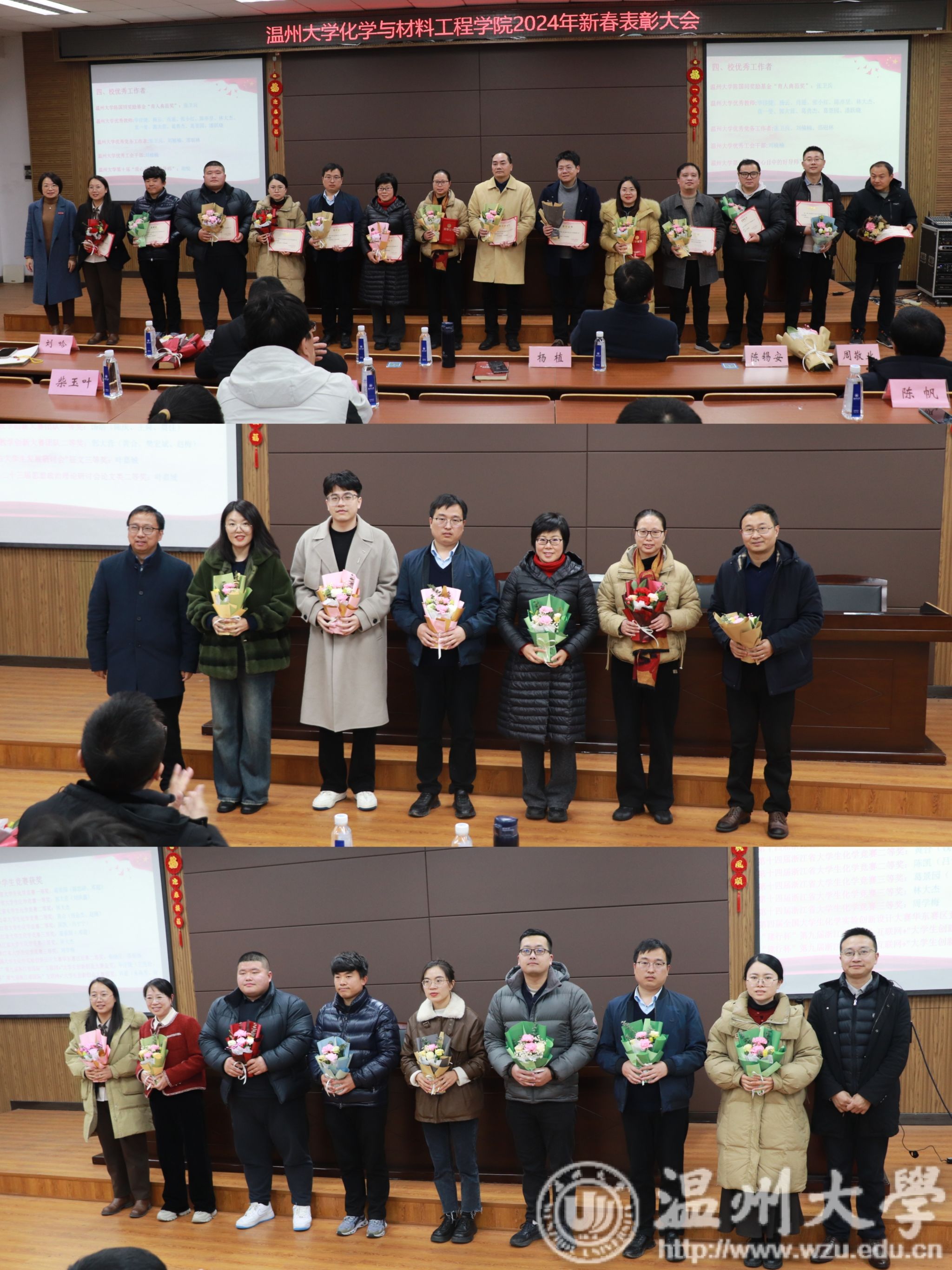 会上举行了2023年下半年新教师入职仪式、2024年春季教职工表彰大会和2023年度“华峰院长奖”颁奖仪式。