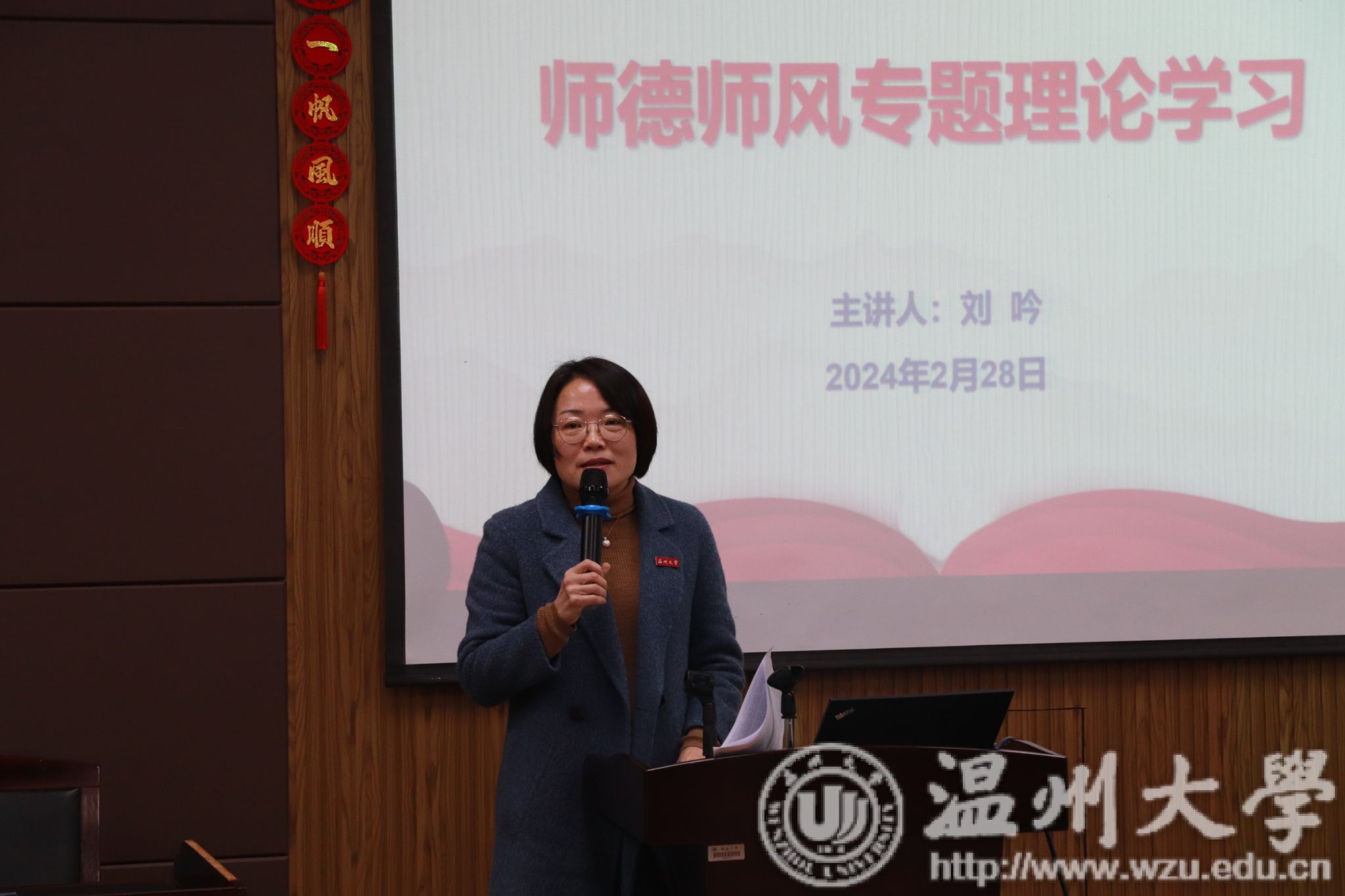 会上刘吟还领学了浙江省教育厅《关于进一步加强和改进新时代师德师风建设的实施意见》,她要求院教职工要深入学习落实好师德师风建设相关文件精神,弘扬高校教师道德风尚,以实际行动担负起为党育人、为国育才的使命,做好学生的引路人。