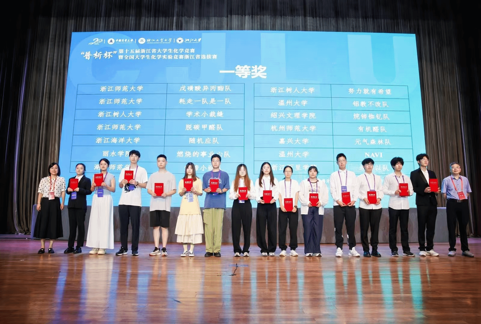 7月30日,历时3月的浙江省“普析杯”第15届浙江省大学生化学竞赛在中国计量大学圆满落幕。来自全省37所高校共计405支队伍在经过“创新项目研究”、“现场答辩”、“实践能力考核”、“化学知识测试”等环节的激烈竞争后决出了成果。本次大赛永利共有20支队伍参赛,其中8支队伍进入最后决赛阶段,最终获得一等奖5项,二等奖3项,三等奖7项的佳绩,总成绩位列全省第二,为历史最佳成绩。在决赛阶段,永利22化学(师范)2班陆思远同学凭借过硬的专业素养以及精湛的化学实验技能晋级全国大学生化学实验大赛,成为全省8位代表浙江省备战国赛的选手之一。