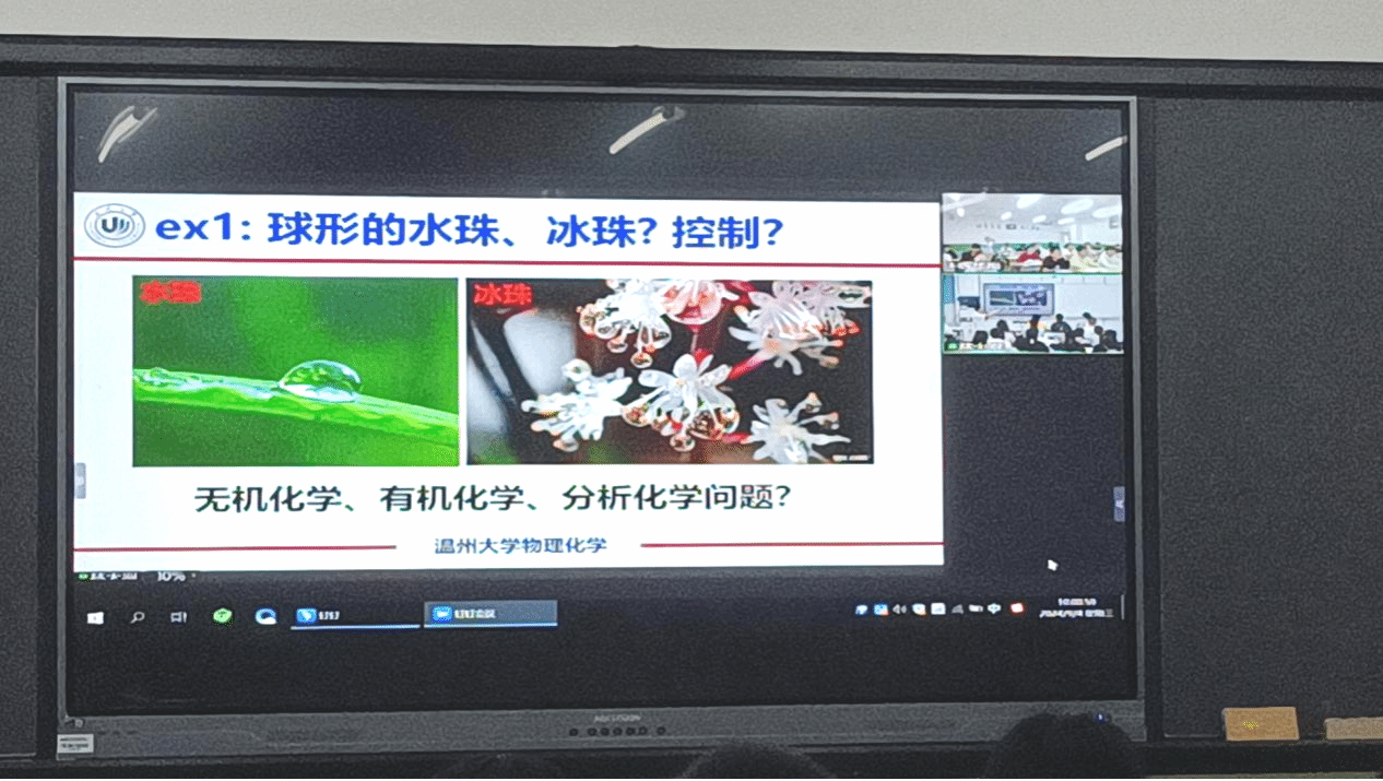 “天涯共此时,人生同启蒙”。课堂上,王舜教授围绕“物理化学绪论”主题,以深入浅出的方式,首先提出了“为何学”物理化学的思考,通过一系列引人入胜的实例——球形水珠与冰珠的奇妙变化、面粉爆炸的科学解释,以及硅胶作为高效干燥剂的原理等,迅速点燃了学生们对物理化学的好奇心与探索欲。他以生动有趣的讲解,让复杂的物理化学概念变得直观易懂,极大地提升了学生的学习兴趣。进而以学生个性化专业发展诉求为导向,结合“学什么”、“怎么学”,顺势带领学生展开学习方法和研究对象的碰撞交流,最后从物理化学的特点引出对“悟”化人生、生涯规划的深度思考。王教授善在课堂中以细节打动人心,在潜移默化中将思政之“盐”溶于课程之“汤”,在专业教育中不断增强学生的价值认同和道路自信,激发了学生立志科技报国的“课程思政”之效,得到了两校师生的热烈回应。
