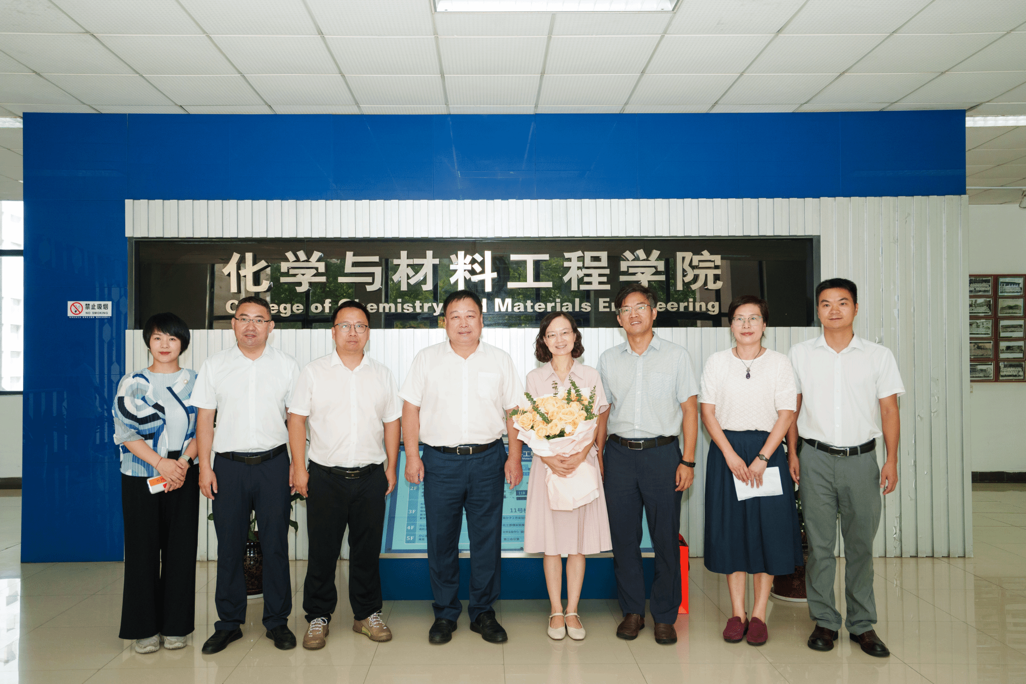 赵敏校长为教师代表缪谦教授献送上鲜花,并对她几十年如一日坚守扎根教育教学一线,深耕育人土壤、匠心培育英材领域的精神表示充分肯定赞赏。他指出强调,以缪教授为代表的化材学院教师队伍始终应牢记为党育人为国育才的初心使命,以教育家精神为指引,踔厉奋发、接续开拓创新,高质量输出人才培养、教学科研、专业建设、学科发展等标志性成果,为为培养研究型拔尖人才、实现学校聚焦“高水平”、争创“双一流”发展战略目标持续贡献智慧和力量。