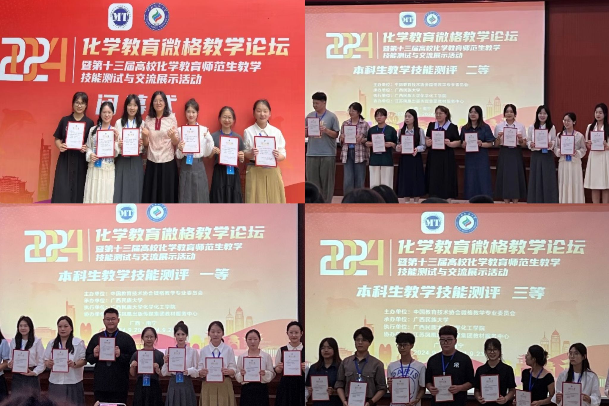 9月20日-23日,由中国教育技术协会微格教学专业委员会主办,广西民族大学承办的第十三届“高校化学师范生教学技能测试与交流展示活动落下帷幕。永利21级化学师范专业6位参赛学生共获得一等奖3项、二等奖2项、三等奖1项的优异成绩,获奖率达百分之百。