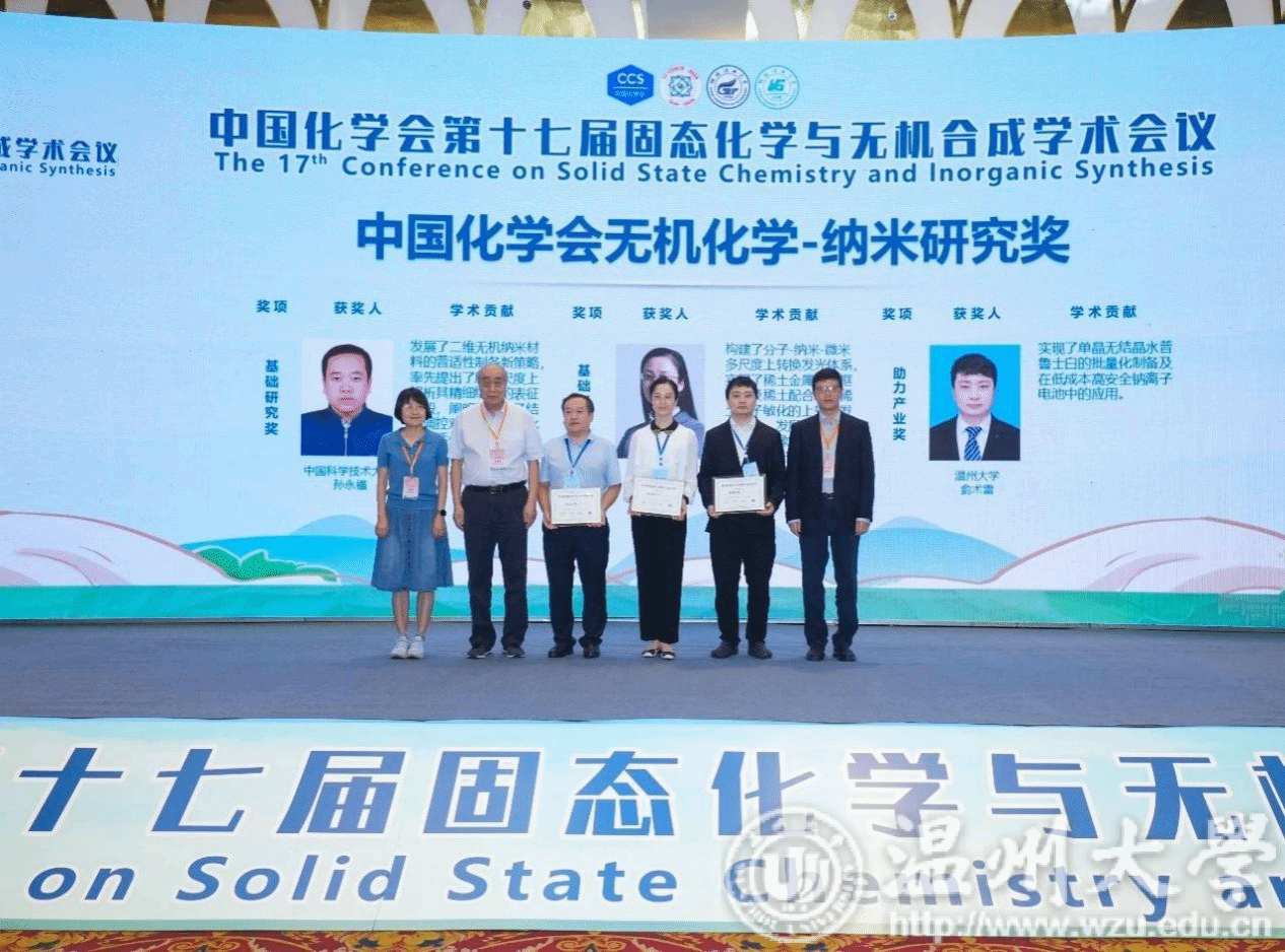 日前,中国化学会第17届固态化学与无机合成学术会议在桂林召开,正式揭晓“第二届中国化学会无机化学-纳米研究奖”获奖名单。永利侴术雷教授荣获“第二届中国化学会无机化学-纳米研究奖”。