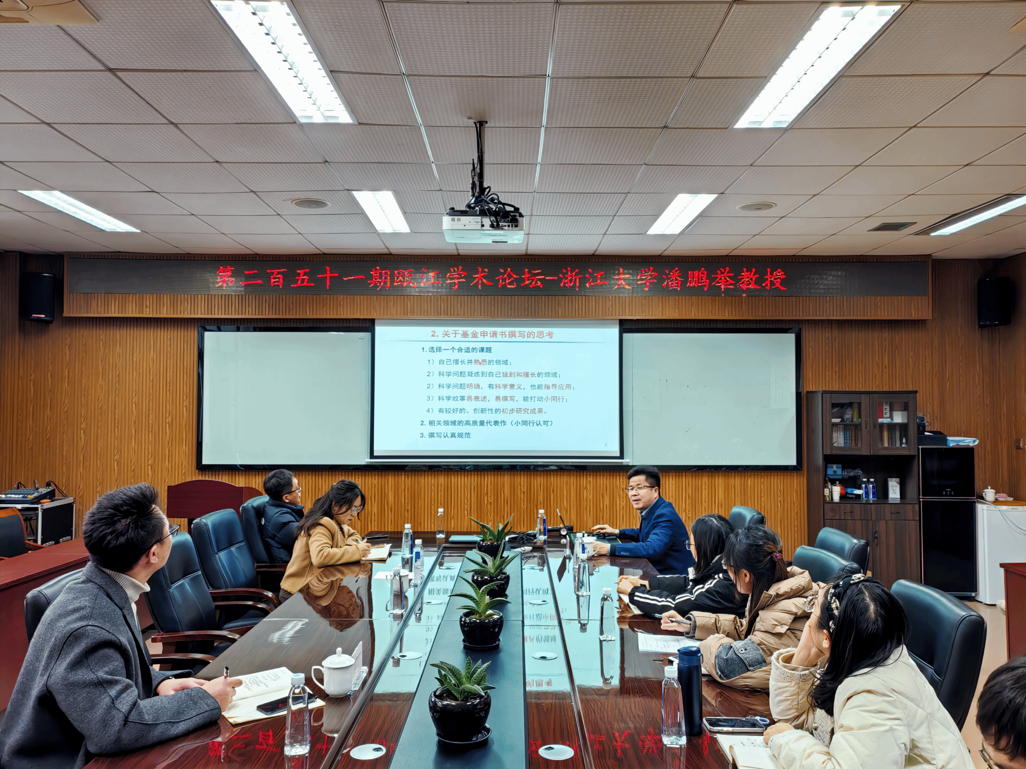 2024年12月26日下午,浙江大学潘鹏举教授做客永利3044集团官网化材学院第二百五十一期瓯江学术论坛,在化材学院204会议室为师生们做题为“关于科研与教学类项目申请的一些思考与体会”学术讲座。讲座由化材学院副院长金辉乐教授主持。