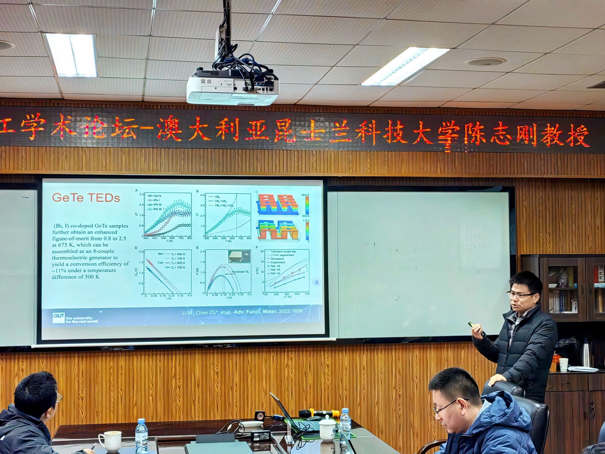 2025年2月23日下午,澳大利亚昆士兰科技大学陈志刚教授做客永利3044集团官网化材学院第二百五十六期瓯江学术论坛,在化材学院204会议室为师生们做题为“Zero-emission thermoelectrics for carbon neutrality”学术讲座。化材学院副院长金辉乐及师生代表参加讲座,讲座由化材学院金辉乐副院长主持。