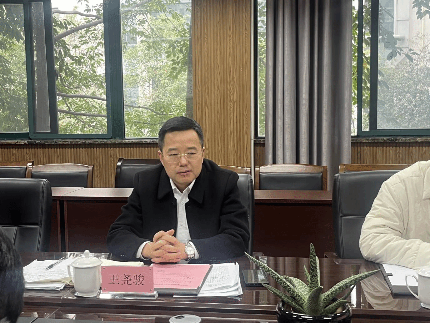 王尧骏副校长全程参与并指导了学院民主生活会,并对班子及成员对照检查进行了点评。他指出,这次民主生活会准备充分,班子及成员对照检查态度认真,紧密联系实际;问题剖析深刻透彻,不遮不掩;批评与自我批评氛围热烈,大家坦诚相见,达到了统一思想、增进团结、凝聚力量、改进工作的目标。对今后的工作:一是要凝心聚力,充分发挥学院党委的引领带头作用,着力把领导班子打造成为推动学院高质量发展的坚强战斗堡垒。二是要勇于担当,积极拓展外部资源,激发内部活力,推动教学、科研、学科建设、对外教育实现新突破,取得新成绩,成为学校高质量发展的排头兵。三是要立足当下,着眼长远,提前谋划“十五五”规划项目,结合学院自身特色与优势,制定科学合理、切实可行的发展规划,明确目标任务,为学院可持续发展奠定坚实基础。