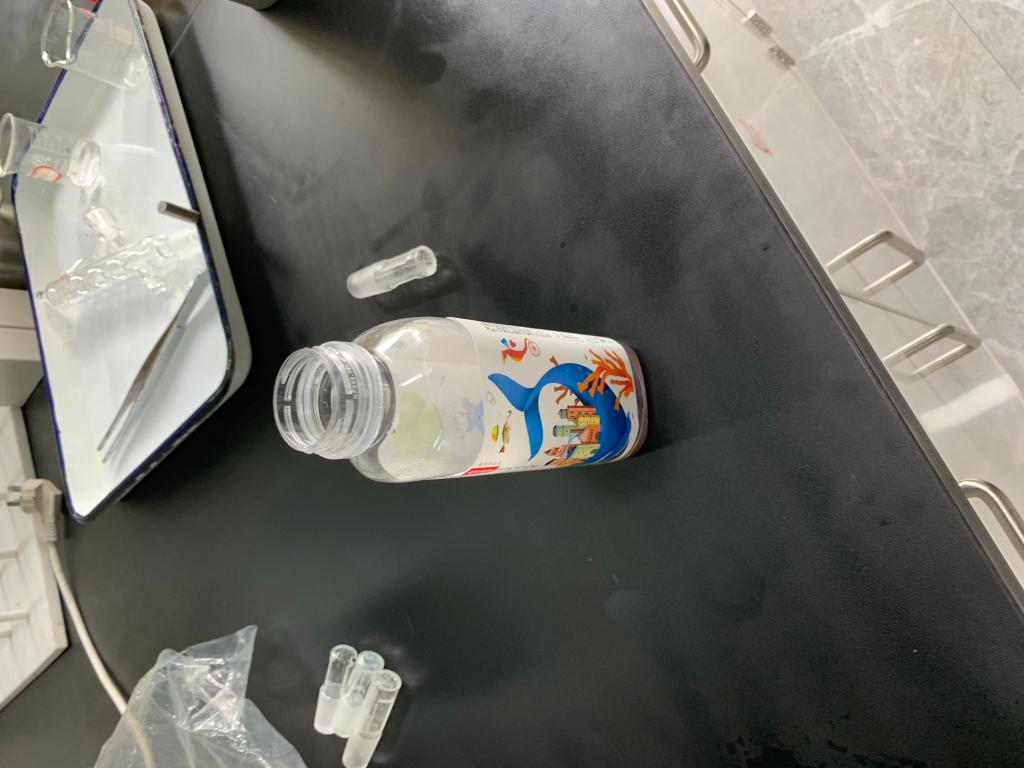 红外灯开着无人看守;饮料瓶装试剂但无标签;气瓶无标识 |