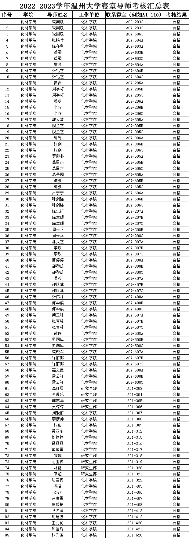 化材学院2022-2023学年永利3044集团官网寝室导师考核汇总表.xls
