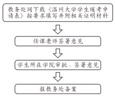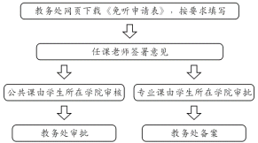 3.如补修课程上课时间有冲突,可申请间断听课(《课程免听申请流程》见附件3)。对于降级学生,如先修课程跟重修课程上课时间有冲突,不能申请先修该门课程。考试时间有冲突可申请缓考(《课程缓考申请流程》见附件4)。为保证学习效果,每学期修读课程总学分原则上不超过20学分。
