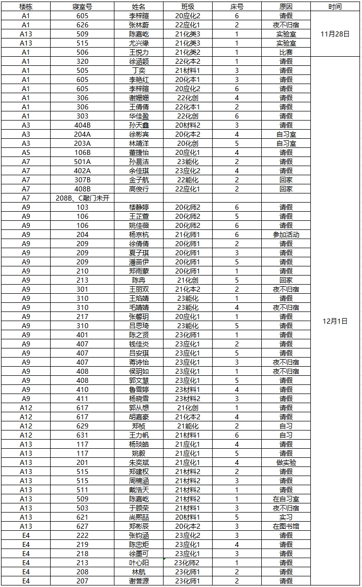 (2)若有学生在其他宿舍舍友可告知其返回核实;