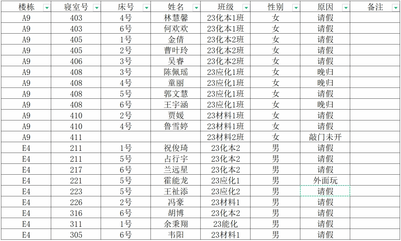 (2)若有学生在其他宿舍舍友可告知其返回核实;