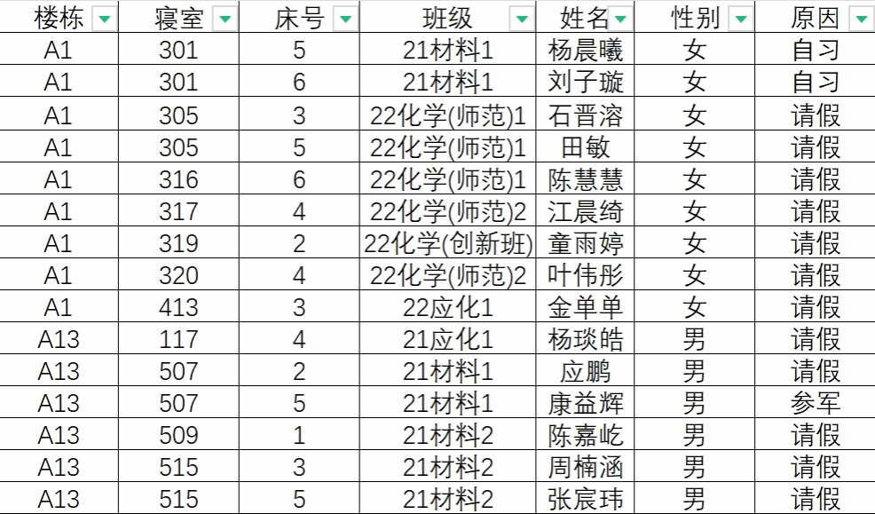 (2)若有学生在其他宿舍舍友可告知其返回核实;