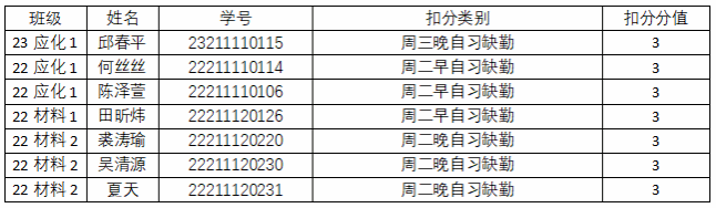 2、根据《永利3044集团官网化材学院大一、大二早晚自习管理规定(201809修订)》,1次早、晚自习缺勤扣3分,学业发展部将在每周在“永利3044集团官网”微信公众号平台公布本周考勤结果,如对公布的考勤结果有异议请当周周五下午4:30前到学生科办公室11B223说明情况,过时无效。22级、23级联系邹培杰老师。3、每周将在化材学院官方网站上公布上周最终考勤结果。4、早晚自习考勤结果纳入月形象班级考核。